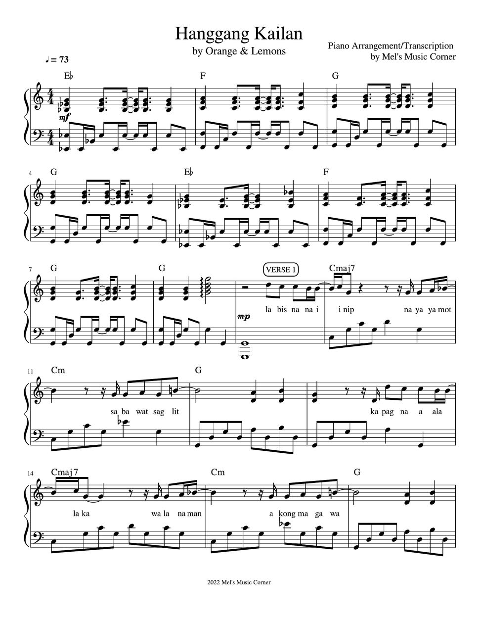 Orange and Lemons Hanggang Kailan (piano sheet music) Sheet by Mel's